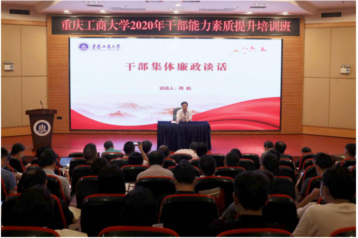 8月31日上午,学校在博智楼7200学术报告厅继续举行干部能力素质提升培训。校党委常委、纪委书记、市监委驻乐鱼在线登录监察专员周航作了干部集体廉政谈话。校党委书记李志雄作了干部集体任职谈话。培训班全体成员参加了谈话。会议由校党委副书记宋豫主持。