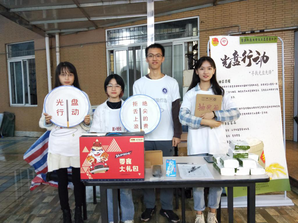 9月21日至22日,学院义工志愿者协会联合机械工程学院义工志愿者协会、校义工志愿者协会,在学校食堂开展“寻找光盘先锋”设点活动。志愿者轮换值班,在兰园食堂、松园食堂、筱园食堂寻找光盘先锋,让同学们写下自己的光盘宣言,引导同学们按需点餐、按需取餐、剩菜打包,让拒绝“剩宴”成为习惯。