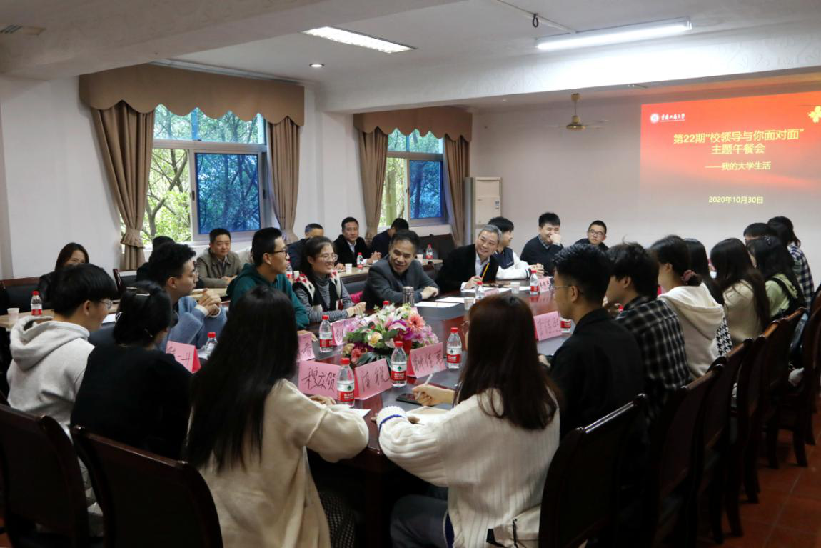 为探索新形势下大学生成长成才的有效途径和方法,促进新生尽快地适应学校环境,不断提升学校学生工作的“精细化”服务水平,10月30日上午,我校在江北校区修德楼3楼会议室召开了以“我的大学生活”为主题的第22期“校领导与你面对面”主题午餐会。党委书记李志雄,副校长李国军,以及相关职能部门负责人和通识学院20余名新生代表参加会议。会议由李国军主持。
