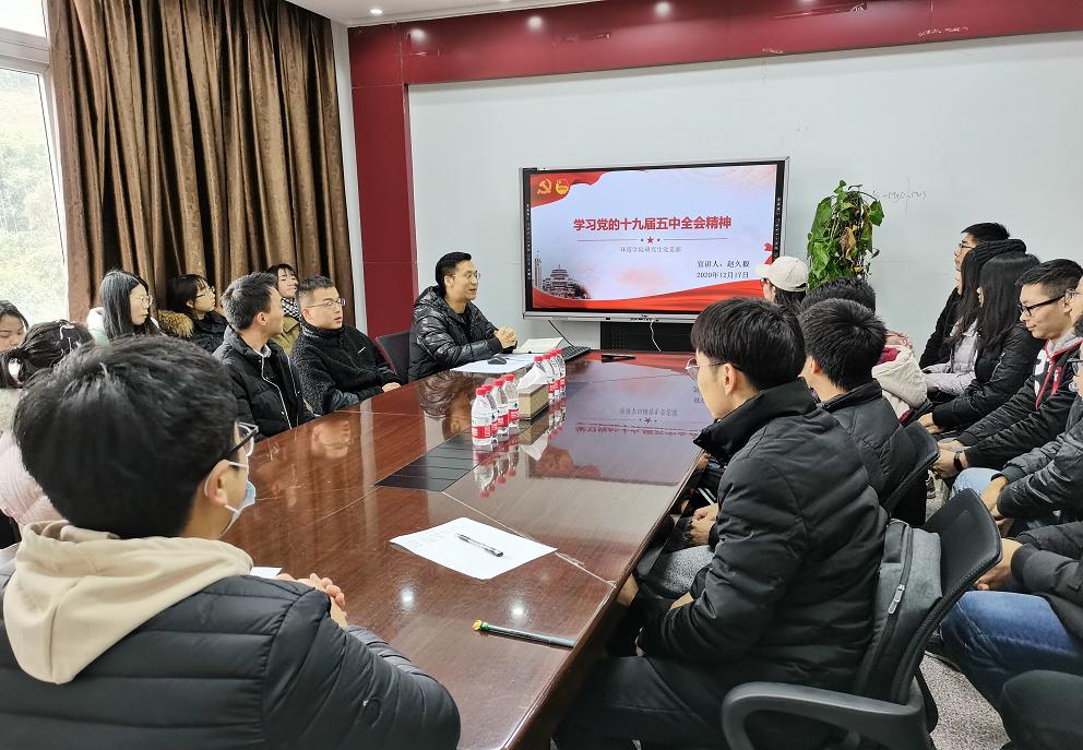 学生宣讲团成员、挑战杯创业计划赛校赛银奖获得者、环境与资源学院2019级食品科学班赵久毅在环境与资源学院宣讲党的十九届五中全会精神。他讲到,作为新时代的见证者和受益者,未来要努力学习,练好本领,争做新时代的建设者,为构建新发展格局贡献青春力量。
