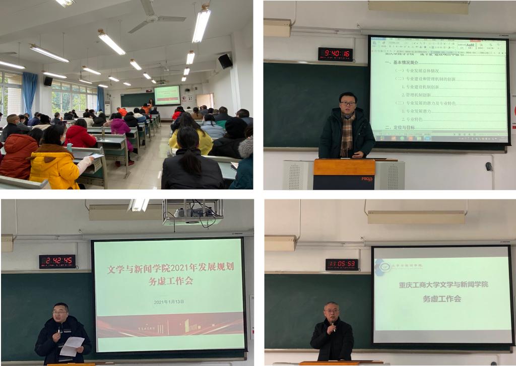 1月14日上午,文学与新闻学院在慧智楼90625室召开了文学与新闻学院2021年暨十四五发展规划务虚工作会。全院教职工参会。会议由文学与新闻学院院长王仕勇主持。