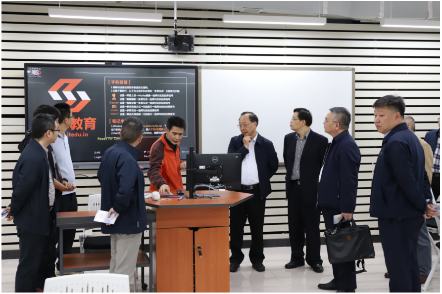 5月6日下午,北京工商大学党委书记黄先开一行来我校调研交流工作,先后参观了我校图书馆、涵智楼智慧教室、国际商学院等教学场地。校党委书记李志雄、校长孙芳城同黄先开在厚德楼举行交流座谈会,副校长何勇平主持。