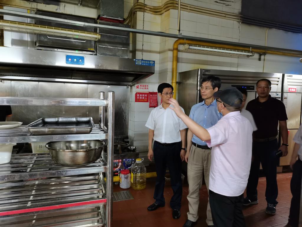 7月5日下午,校长孙芳城、副校长陈兴述深入学校各食堂,对食品安全、食堂管理等工作进行检查,资产管理处、后勤处等部门负责人陪同检查。