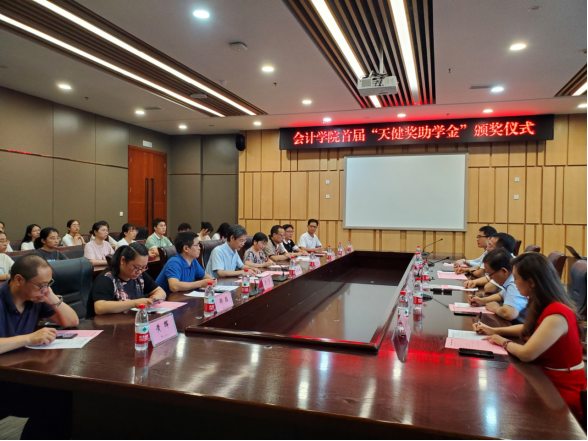 9月26日下午,会计学院首届“天健奖(助)学金”颁奖仪式在图书馆五会议室举行。校长孙芳城出席颁奖仪式,天健会计师事务所合伙人管委会委员、副总裁、重庆分所总经理龙文虎,天健会计师事务所高级合伙人、重庆分所副总经理潘理科、李青龙等,会计学院班子成员及获奖师生代表参加了颁奖仪式。颁奖仪式由会计学院党委书记罗惠玉主持。