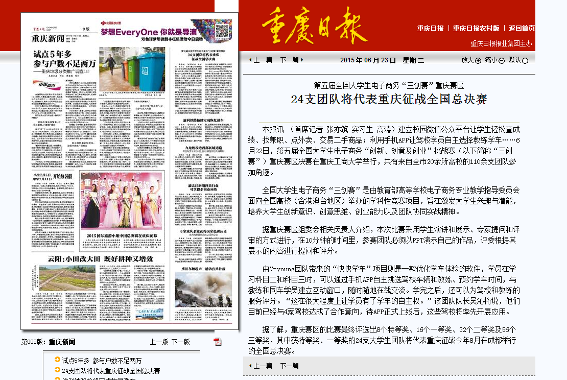 本次的重庆赛区决赛由我校承办,商务策划学院协办,同时也收到了社会各界媒体的广泛关注和报道。