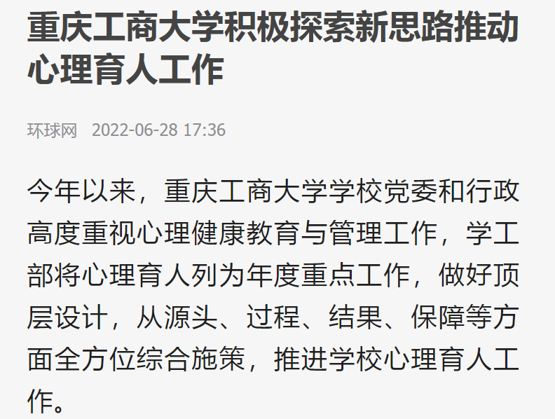 环球网报道我校心理育人工作
