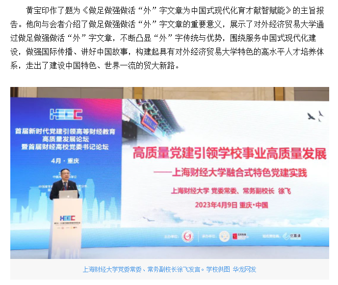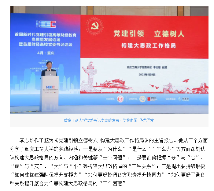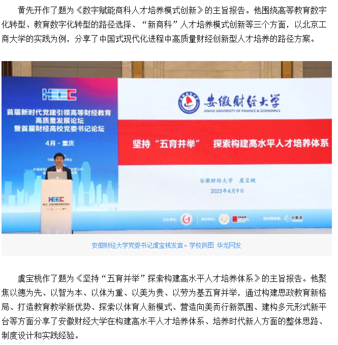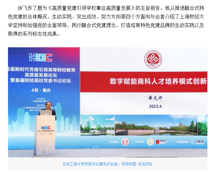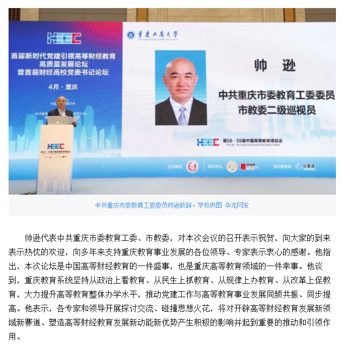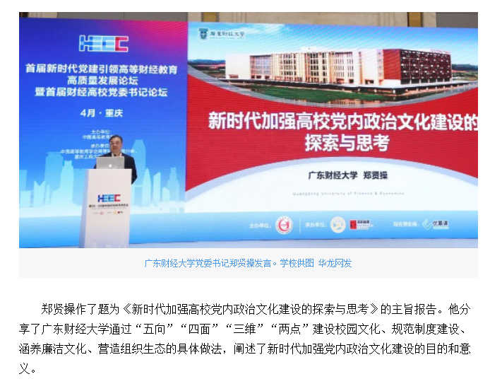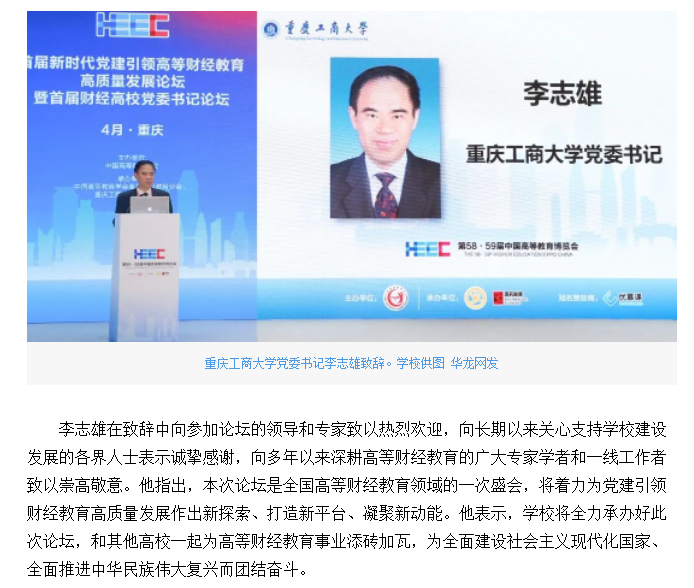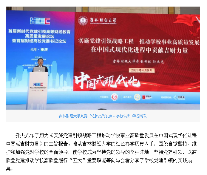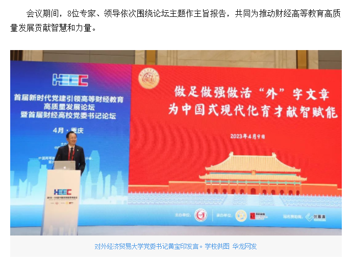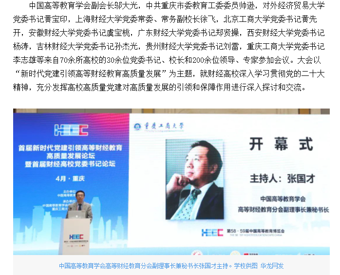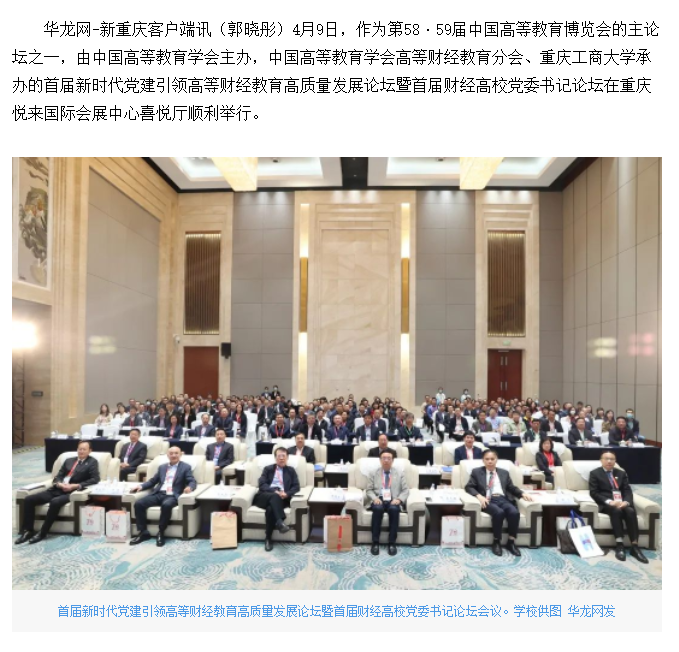 华龙网报道我校承办的首届新时代党建引领高等财经教育高质量发展论坛暨首届财经高校党委书记论坛
