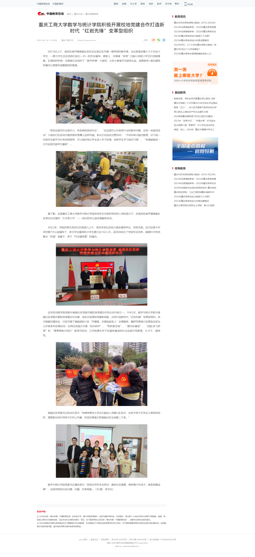 华龙网、中国教育在线、新浪网报道我校数学与统计学院积极开展校地党建合作打造新时代“红岩先锋” 变革型组织