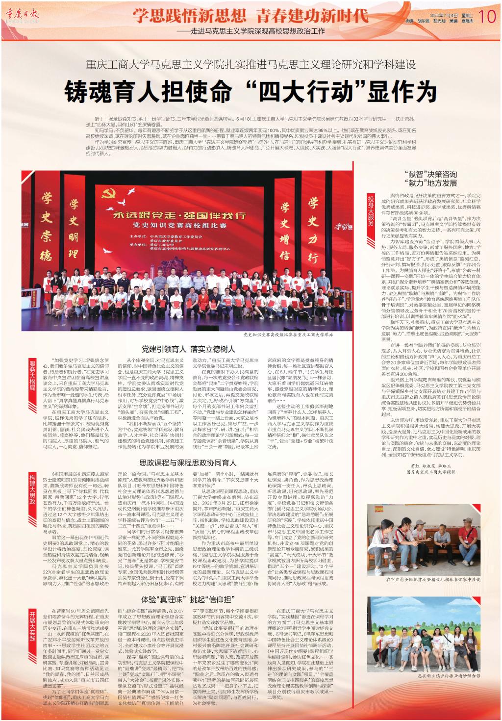 重庆日报整版报道我校马克思主义学院扎实推进马克思主义理论研究和学科建设