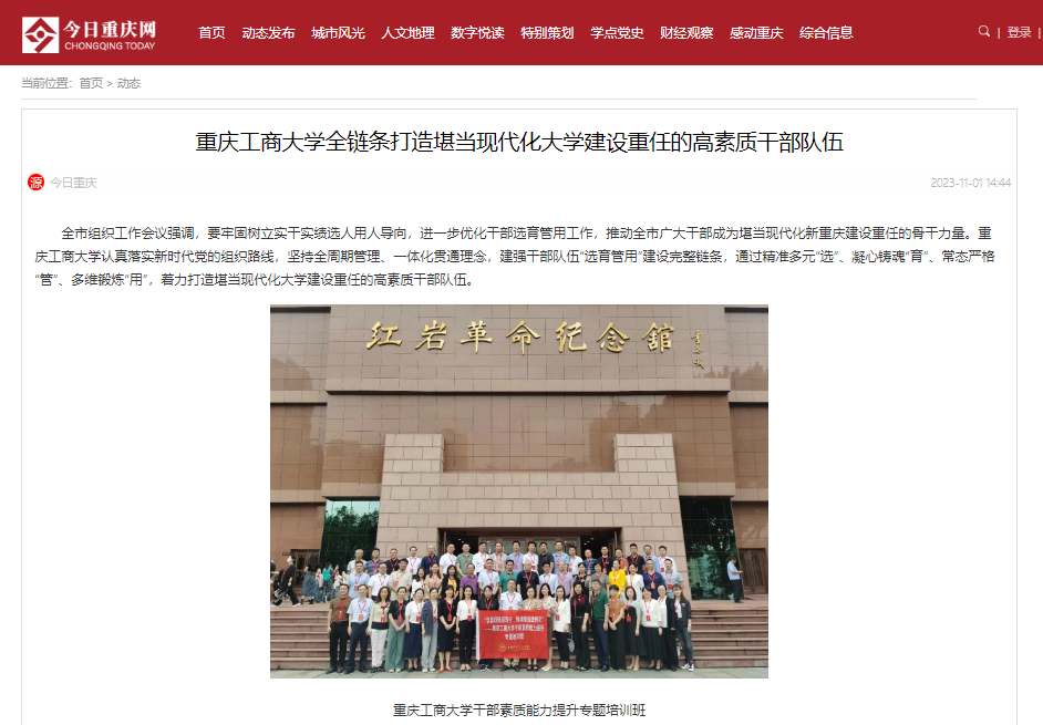 11月1日,今日重庆网以《乐鱼在线登录全链条打造堪当现代化大学建设重任的高素质干部队伍》报道我校干部队伍建设工作的做法经验。