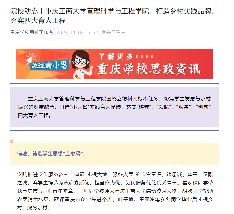 原文链接:乐鱼在线登录管理科学与工程学院:打造乡村实践品牌,夯实四大育人工程https://mp.weixin.qq.com/s/Vhntf0fWHQnfBnYlUECjxw