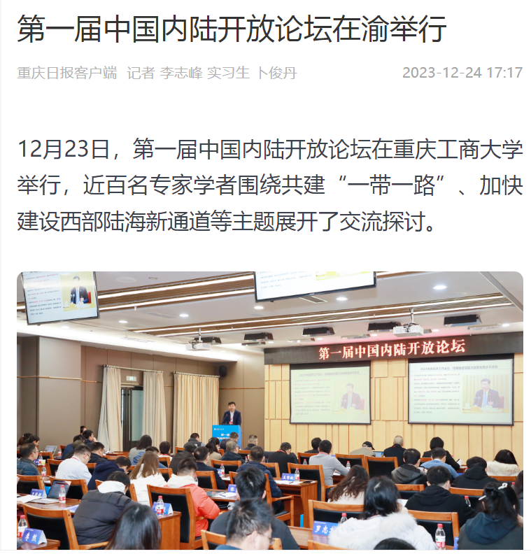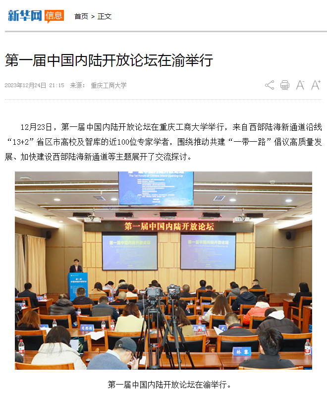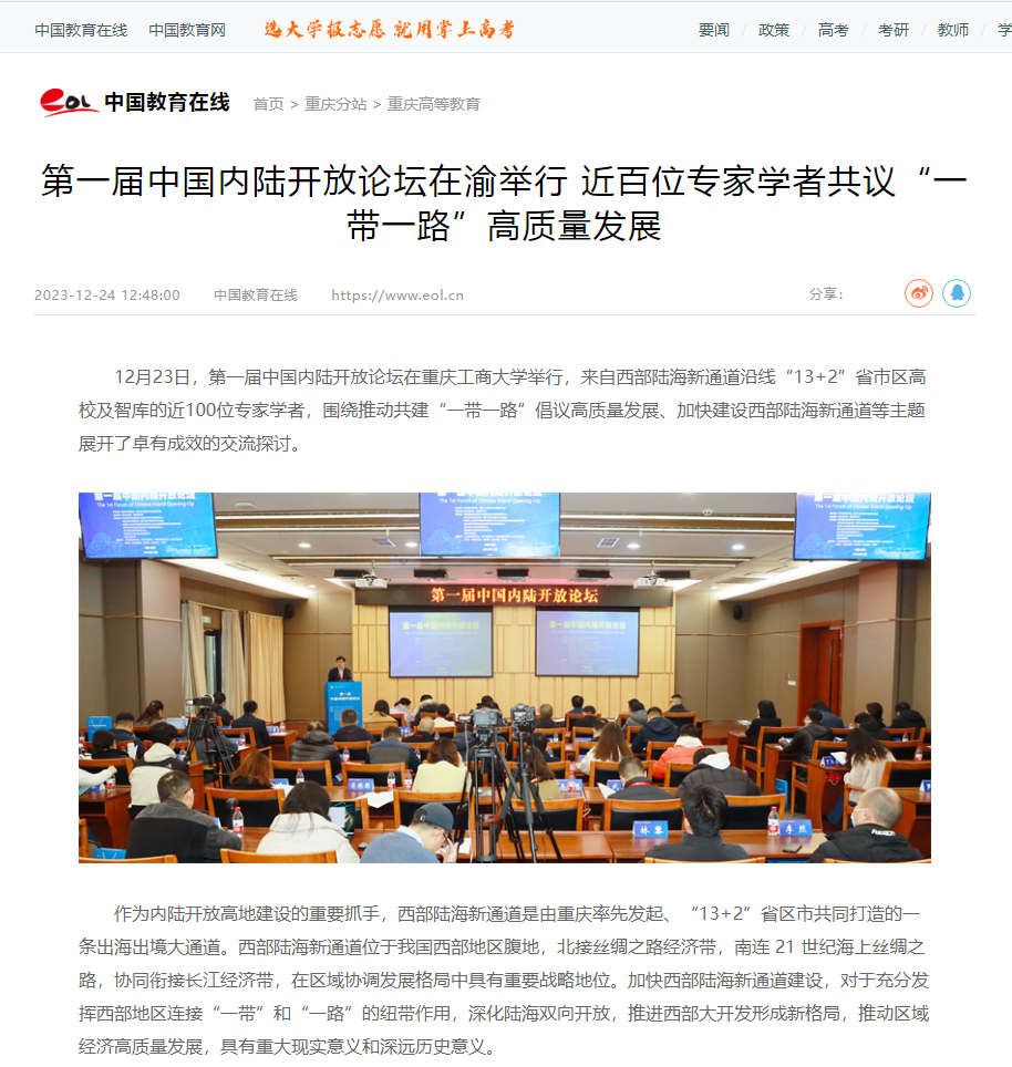 12月23日,第一届中国内陆开放论坛在乐鱼在线登录举行,来自西部陆海新通道沿线“13+2”省市区高校及智库的近100位专家学者,围绕推动共建“一带一路”倡议高质量发展、加快建设西部陆海新通道等主题展开了卓有成效的交流探讨。本次论坛由重庆市教育委员会、重庆市人民政府口岸和物流办公室指导;乐鱼在线登录、西南财经大学主办;教育部国别和区域研究中心乐鱼在线登录东南亚研究中心、乐鱼在线登录经济学院、乐鱼在线登录国际合作与交流处、教育部人文社会科学重点研究基地成渝地区双城经济圈建设研究院、乐鱼在线登录成渝经济区城市群产业发展协同创新中心、乐鱼在线登录数字经济研究中心、西南财经大学成渝经济区发展研究院、成都大学商学院等联合承办。