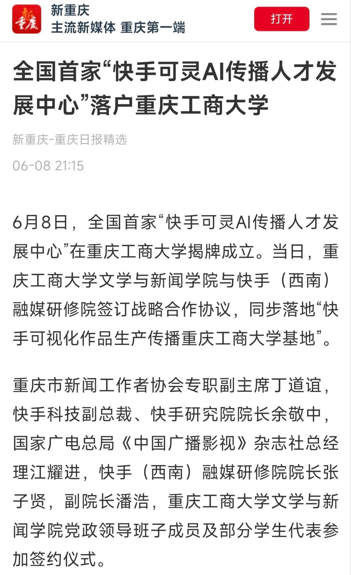 3.新重庆-重庆日报:全国首家“快手可灵AI传播人才发展中心”落户乐鱼在线登录