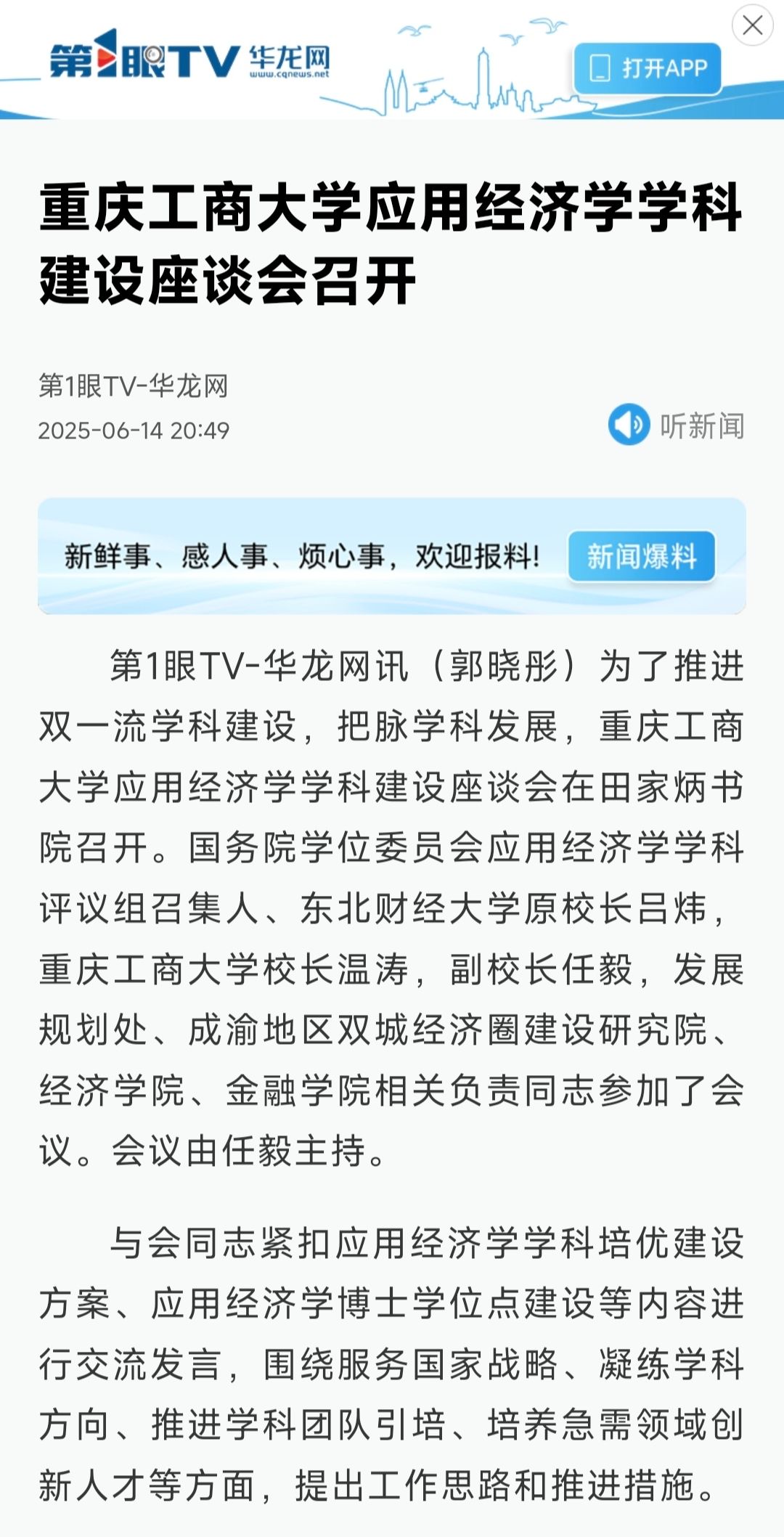 华龙网以《乐鱼在线登录应用经济学学科建设座谈会召开》为题,中国教育在线以《服务国家战略,深耕学科特色——乐鱼在线登录召开应用经济学学科建设座谈会》为题,纷纷报道了本次活动。