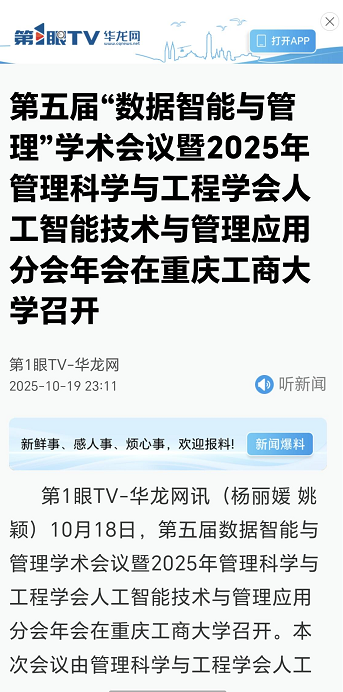 2.第1眼TV-华龙网:第五届“数据智能与管理”学术会议暨2025年管理科学与工程学会人工智能技术与管理应用分会年会在乐鱼在线登录召开