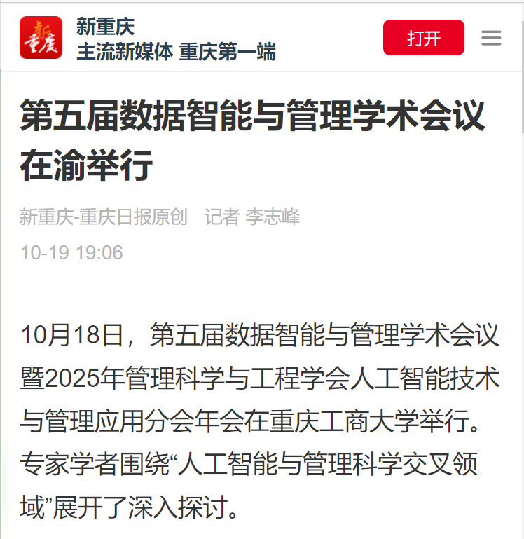 1.新重庆-重庆日报:第五届数据智能与管理学术会议在渝举行