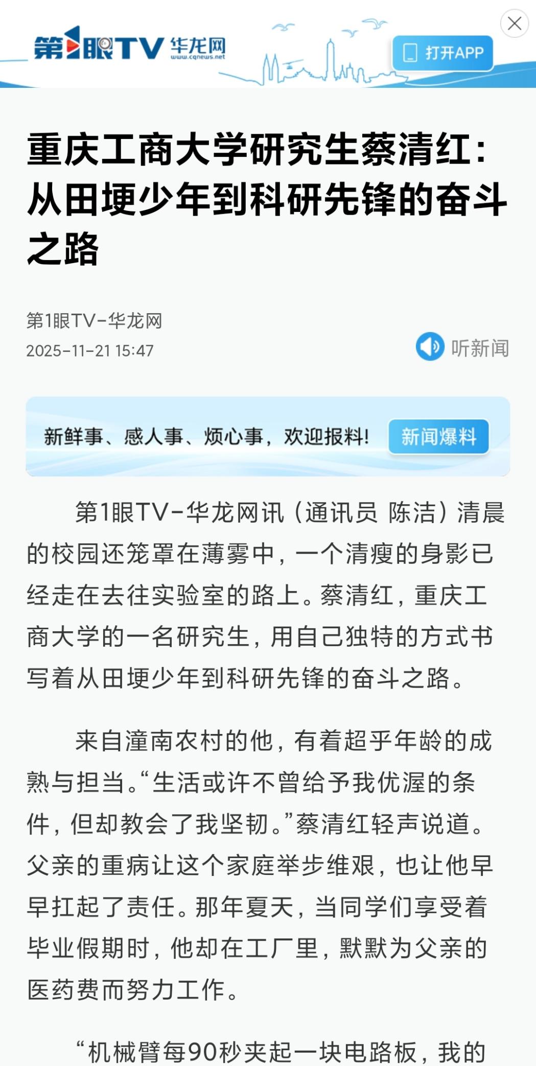 3.华龙网以《乐鱼在线登录研究生蔡清红:从田埂少年到科研先锋的奋斗之路》