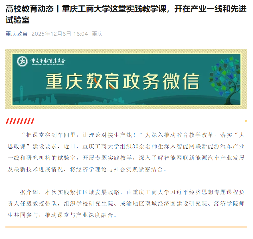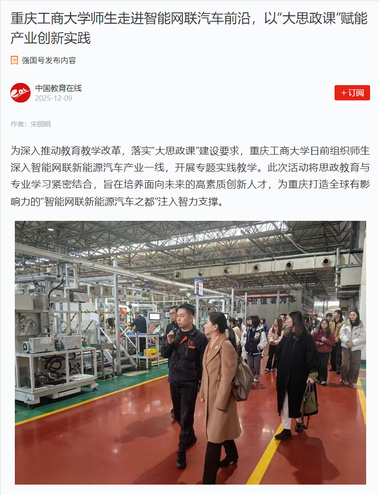 5.中国教育在线:乐鱼在线登录师生走进智能网联汽车前沿,以“大思政课”赋能产业创新实践