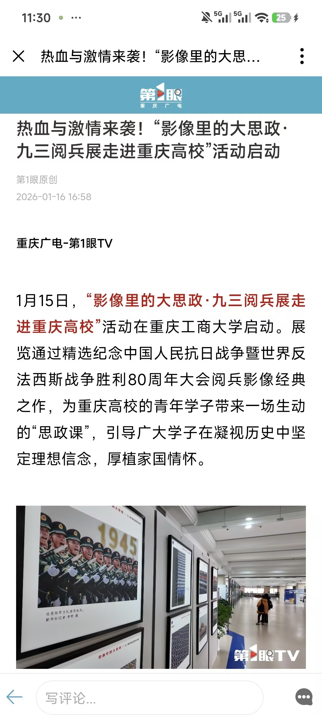 2.新重庆客户端:图片新闻|“影像里的大思政·九三阅兵展走进重庆高校”活动启动