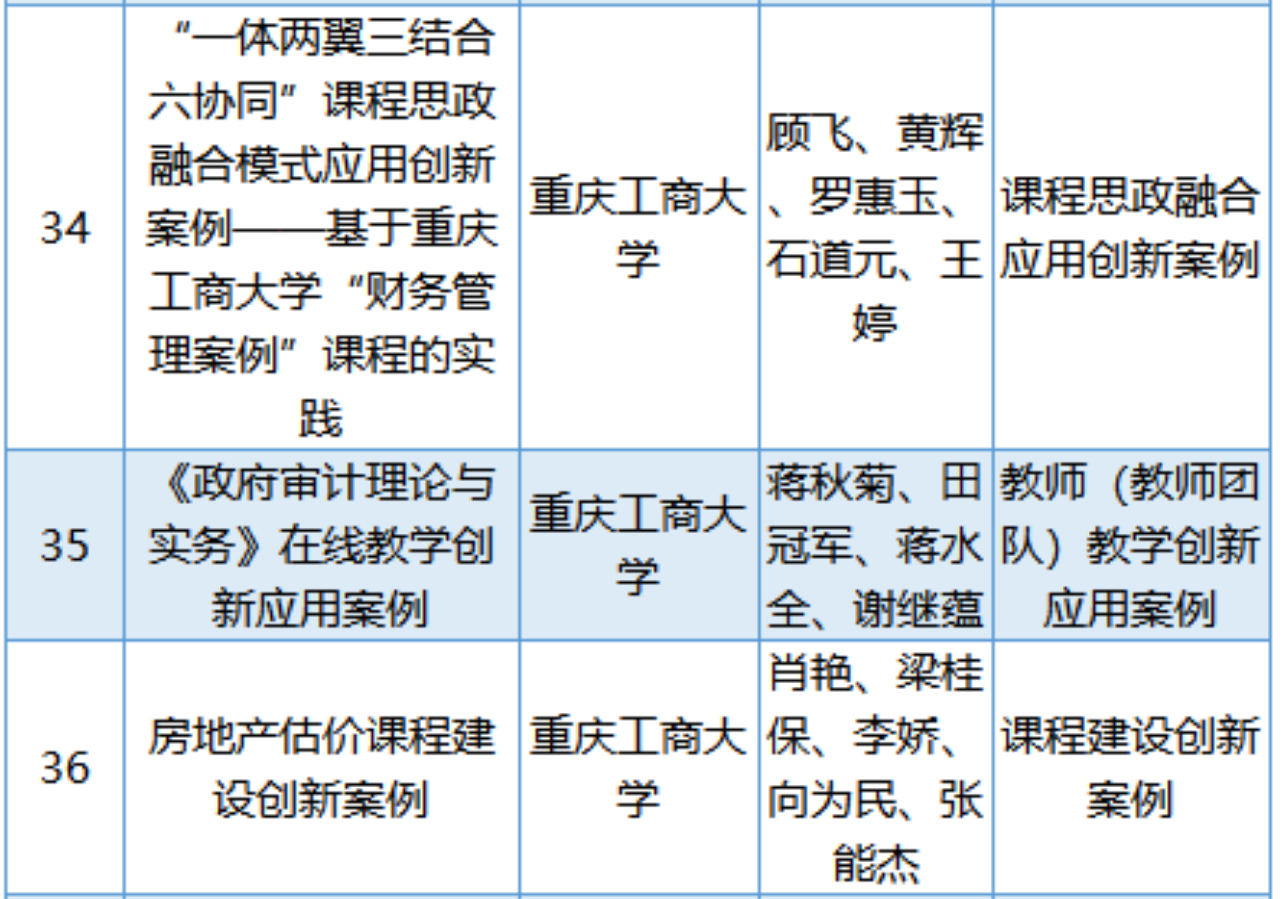 我校《“一体两翼三结合六协同”课程思政融合模式应用创新案例——基于乐鱼在线登录“财务管理案例”课程的实践》、《<政府审计理论与实务>在线教学创新应用案例》、《房地产估价课程建设创新案例》三项成功入选。
