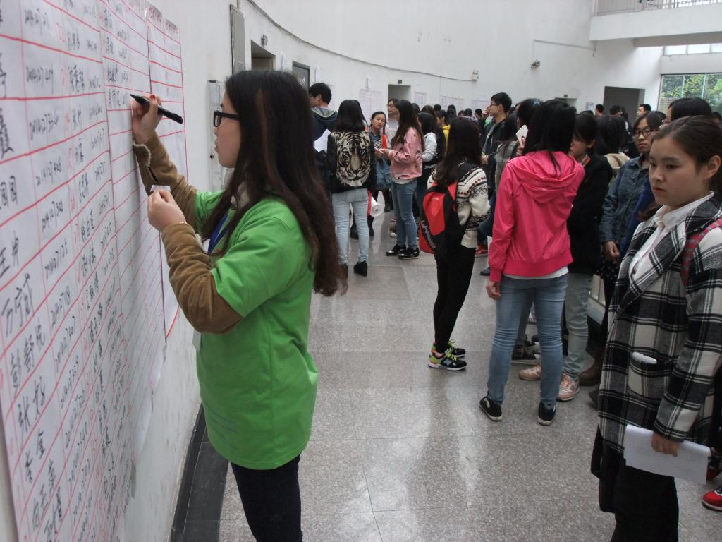 下午,环境与生物工程学院2014级本科“大类招生专业分流现场确认会”在90309、90310展开。我校副校长郑旭煦教授、教务处胥江河副处长、环境与生物工程学院党总支王竹青书记、院长傅敏教授、党总支宋海雨副书记、副院长李宁教授及分团委书记谭彩荷老师、各班级辅导员出席了本次活动。