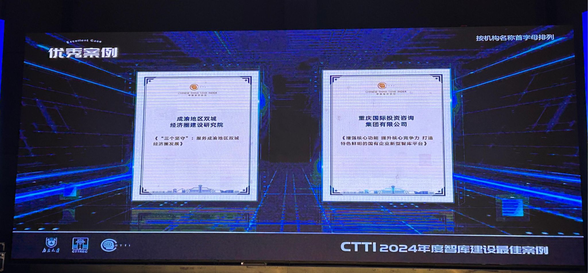 论坛上公布了CTTI 2024年度智库最佳案例与优秀成果征集推介活动的结果。其中,我校成渝地区双城经济圈建设研究院智库建设案例《“三个坚守”:服务成渝地区双城经济圈发展》入选CTTI 2024年度智库建设优秀案例,副校长任毅教授领衔完成的智库成果《高质量发展背景下重庆加快构建先导性产业体系路径研究》获得CTTI 2024年度智库优秀成果二等奖。