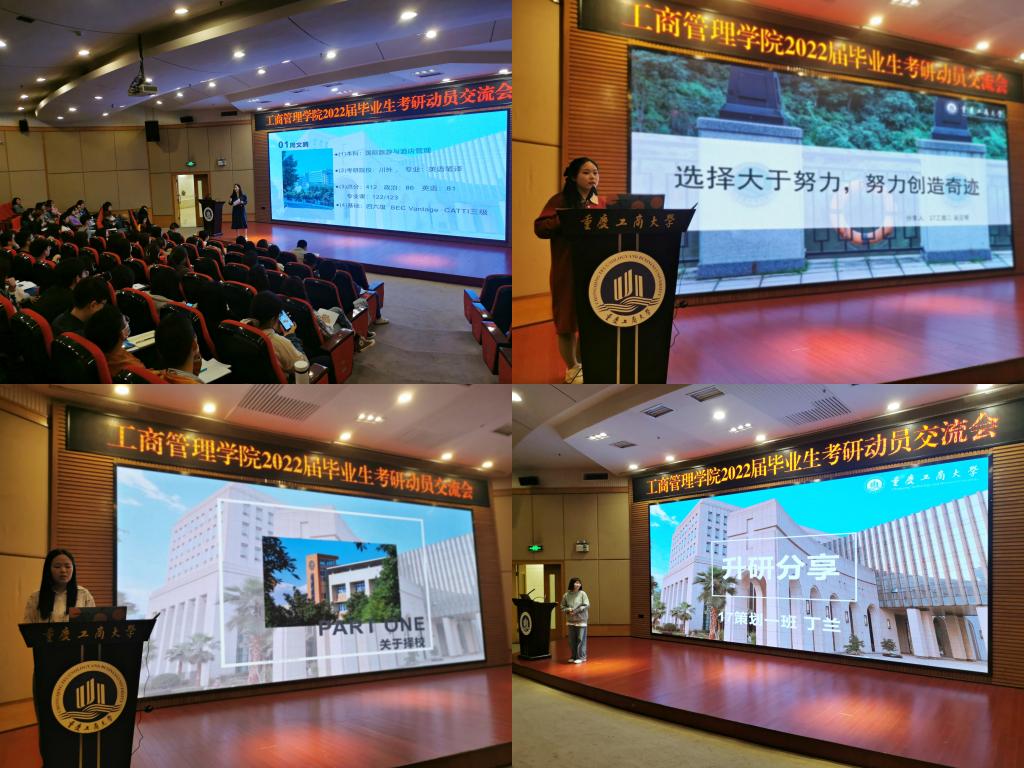 4月25日,工商管理学院在博智楼7200报告厅召开2022届毕业生考研动员交流会。工商管理学院党委副书记郭敏、副院长陈伟、全体辅导员和200余名2018级考研学生参加了交流会,会议由专职辅导员刘榴主持。