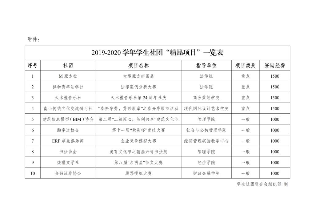 据悉,本次学生社团“精品项目”立项活动共收到申请22项,经学工部、校团委、相关学院分党委等职能部门组成的评审组共评选出学生社团 “精品项目”10项,其中,重点项目4项、一般项目6项,校团委将对“精品项目”给予一定资金支持。