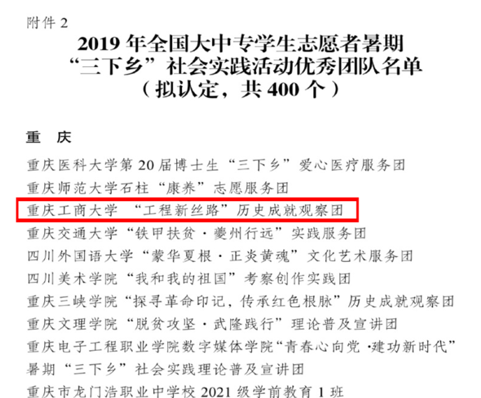 2019年暑期,为深入学习贯彻习近平总书记新时代中国特色社会主义思想和党的十九大以及十九届二中、三中全会精神,7月7日到7月14日,我校2019年暑期三下乡“历史成就观察团”全体成员在重庆和贵阳开展了为期7天的暑期“三下乡”调研活动。