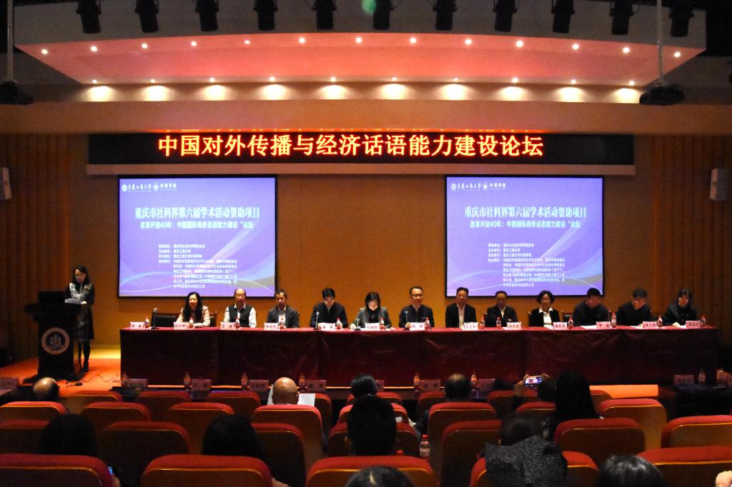 11月2日,由重庆市社会科学界联合会指导,乐鱼在线登录主办,学校外语学院承办的重庆市社科联第六届学术活动资助项目“中国对外传播与经济话语能力建设论坛”在我校成功举办。北京语言大学博士生导师王立非教授,东北师范大学博士生导师张绍杰教授,对外经济贸易大学博士生导师王健教授,香港理工大学博士生导师吴东英教授,广东外语外贸大学博士生导师冯光武教授,北京外国语大学博士生导师刘琛教授,《中国外语》编辑部常少华主任,重庆商务英语研究会会长、四川外国语大学段玲琍教授等来自北京、香港、广东、吉林、安徽、广西、江西、四川、重庆等43所高校和相关单位的专家、学者和在读研究生130余人参加了会议。