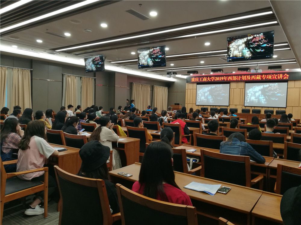 4月17日上午10时,共青团中央、教育部、财政部、人力资源和社会保障部联合召开了大学生志愿服务西部计划工作部署电视电话会议。为全面落实会议精神,进一步做好大学生志愿服务西部计划工作, 4月17日下午2时30分,校团委、招生就业处联合召开了我校2019年西部计划宣讲会。重庆市志愿服务中心、校团委、招就处相关工作人员、来自西藏专项的志愿者代表、我校2019届毕业生、志愿者代表共150余人参加了会议。