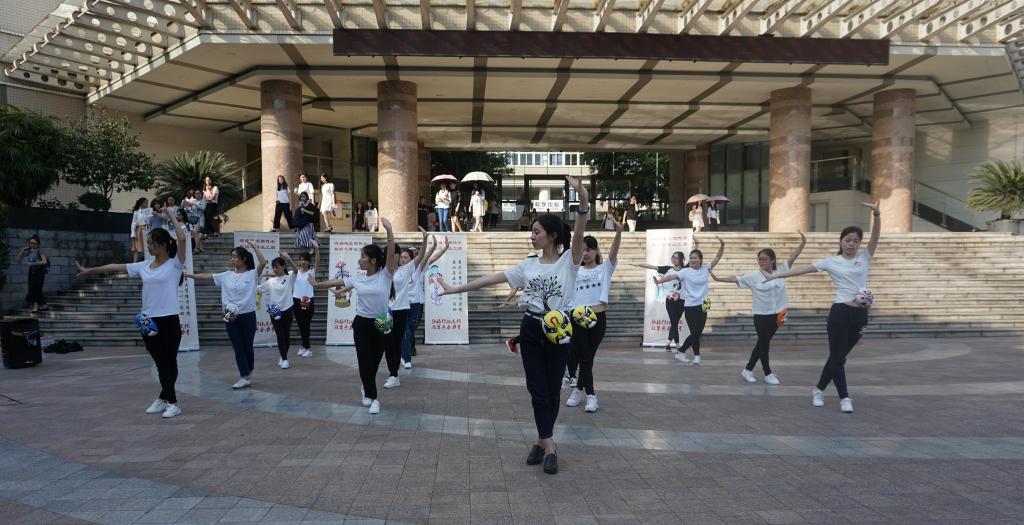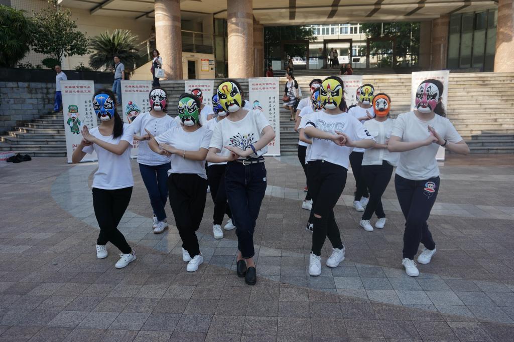 同学们表演的是中国有史以来第一套“戏曲广播体操”,戏曲操创新性的把戏曲程式化动作融入到大众健身理念,以流行动感的音乐配合优美的戏曲基本功动作,2017年1月一经推出便刷爆朋友圈,但是戏曲操目前在高校的推广的速度还有待加快。
