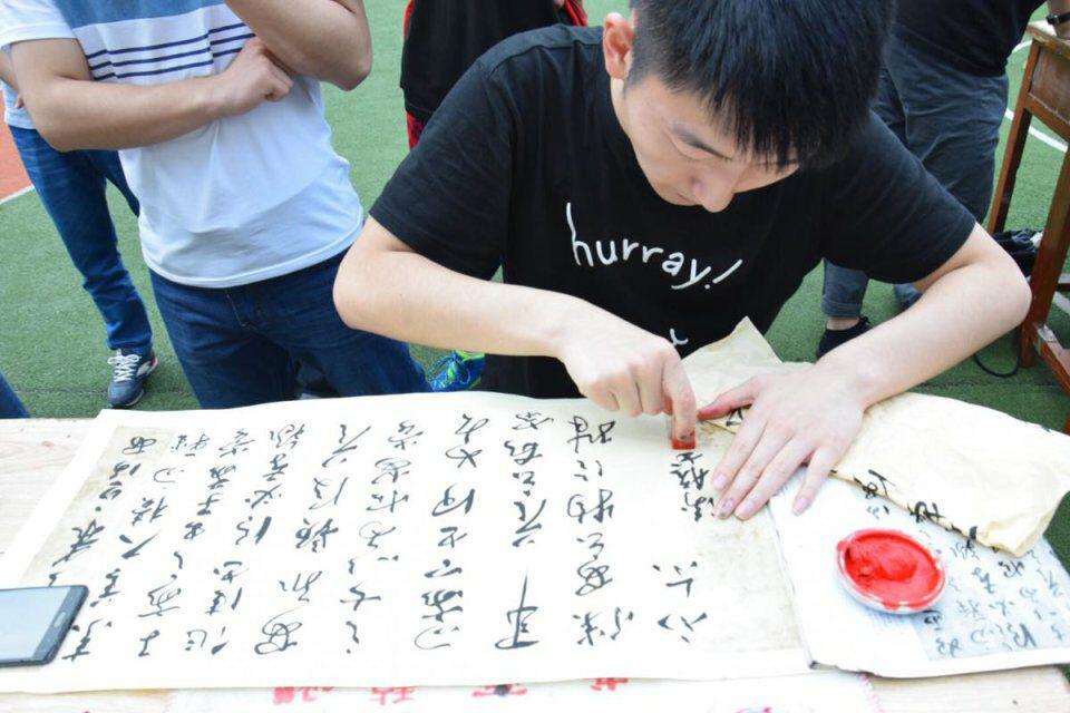 2017年5月12日下午,乐鱼在线登录的绿茵场显得格外清爽,今天的绿茵场并非一个体育竞技场,而是一个挥毫泼墨的书法比赛现场。