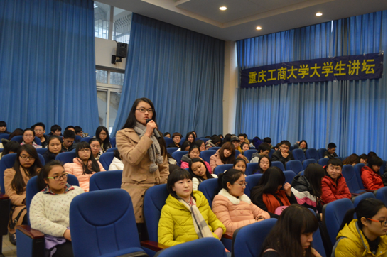 12月26日下午,我校第六期大学生讲坛在江北校区B教509学术报告厅举行。主讲人贺勇同学跟大家探讨了了社会主义核心价值观的内涵,跟大家分享了在践行社会主义核心价值观时应避免出现“认识片面”、“知行脱节”、“认同缺失”等问题,并告诫大家要求真务实,努力学习科学文化知识以提高自我修养,为社会主义建设事业贡献力量。随后,贺勇同学就当代大学生该如何爱国问题,跟现场同学进行了深入的探讨,引发了现场同学的思考。
