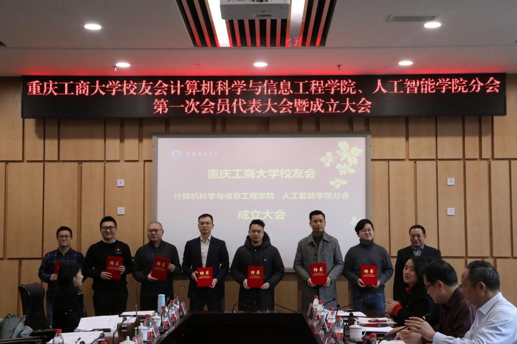 成立大会在何希平院长的致辞中拉开帷幕。他从学科、专业和平台建设、基础研究和工程科学研发、人才队伍建设、学生学科竞赛、国际合作等方面回顾了学院近年来的建设发展情况;学院学工办副主任向巧代表筹备组向与会人员汇报了校友分会各项筹备工作的具体情况;学校校友办张如强老师向大会宣读了《关于同意成立乐鱼在线登录校友会计信学院分会的批复》;参会校友审议并通过了《乐鱼在线登录校友会计信学院分会章程》、《乐鱼在线登录校友会计信学院分会会长、名誉会长、执行会长、副会长、秘书长、副秘书长建议名单》;蒋年韬为校友分会授牌,至此,计信学院校友分会正式宣告成立。接下来,与会领导嘉宾上台为新当选的分会负责人和理事一一颁发聘书。新当选的执行会长,98级重庆如泰科技有限公司董事长印强在发言中表示,感谢校友们的信任,他将在今后的校友分会工作中,严格遵守校友分会章程,认真履行职责,团结各位校友,开拓进取,竭尽所能,为校友和学院的发展服务,不辜负母校和校友们的殷切期望。