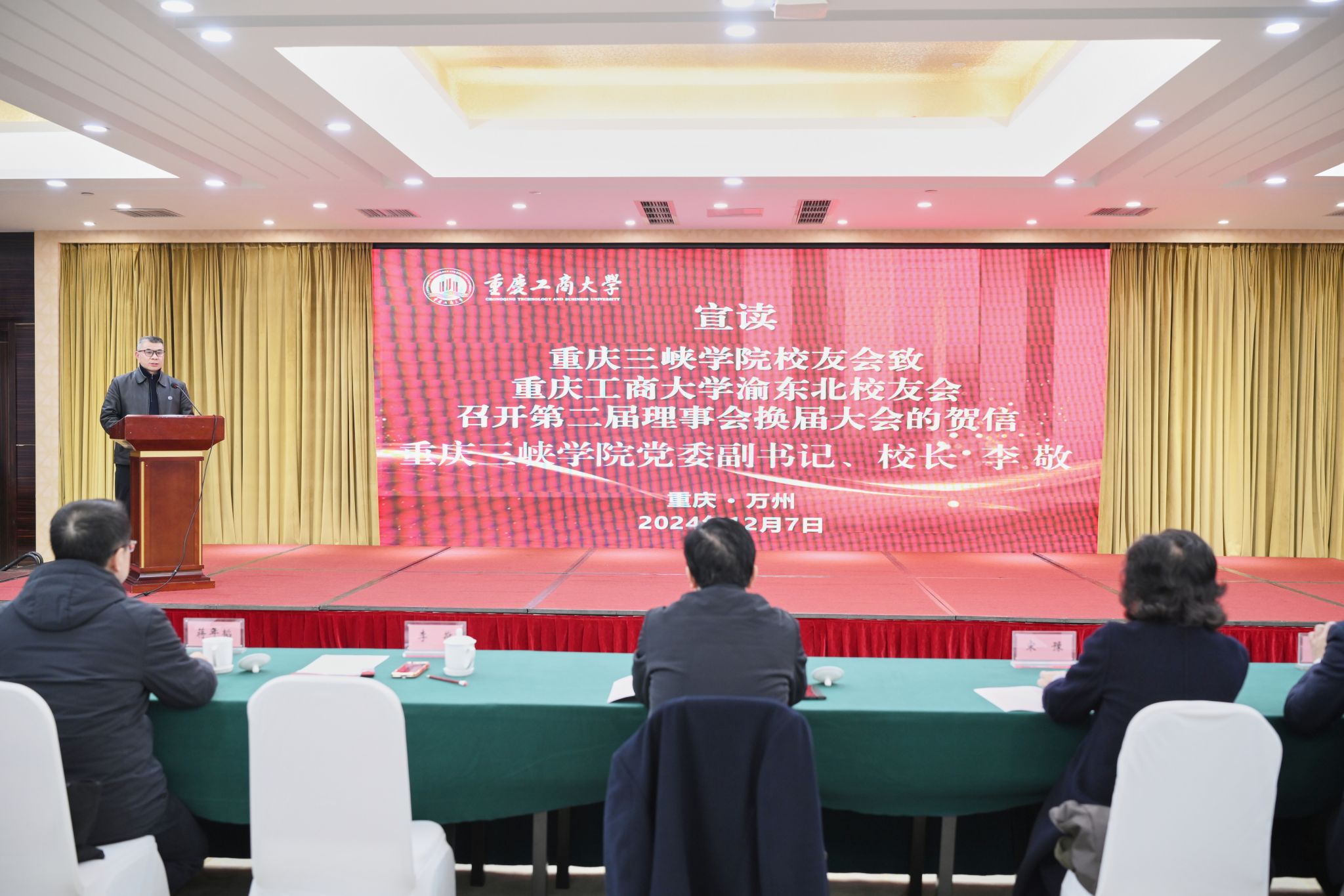 近日,学校党委书记曾维伦,党委副书记宋豫带领党政办公室、国内合作发展处(校友工作办公室)等部门的负责同志,出席了我校渝东北校友会第二届理事会换届大会暨2024年年会。重庆三峡学院党委副书记、校长李敬应邀出席并致贺信。会议由国内合作发展处处长、校友工作办公室主任郭敏主持。来自渝东北11个区县的近60名校友代表参加了会议。
