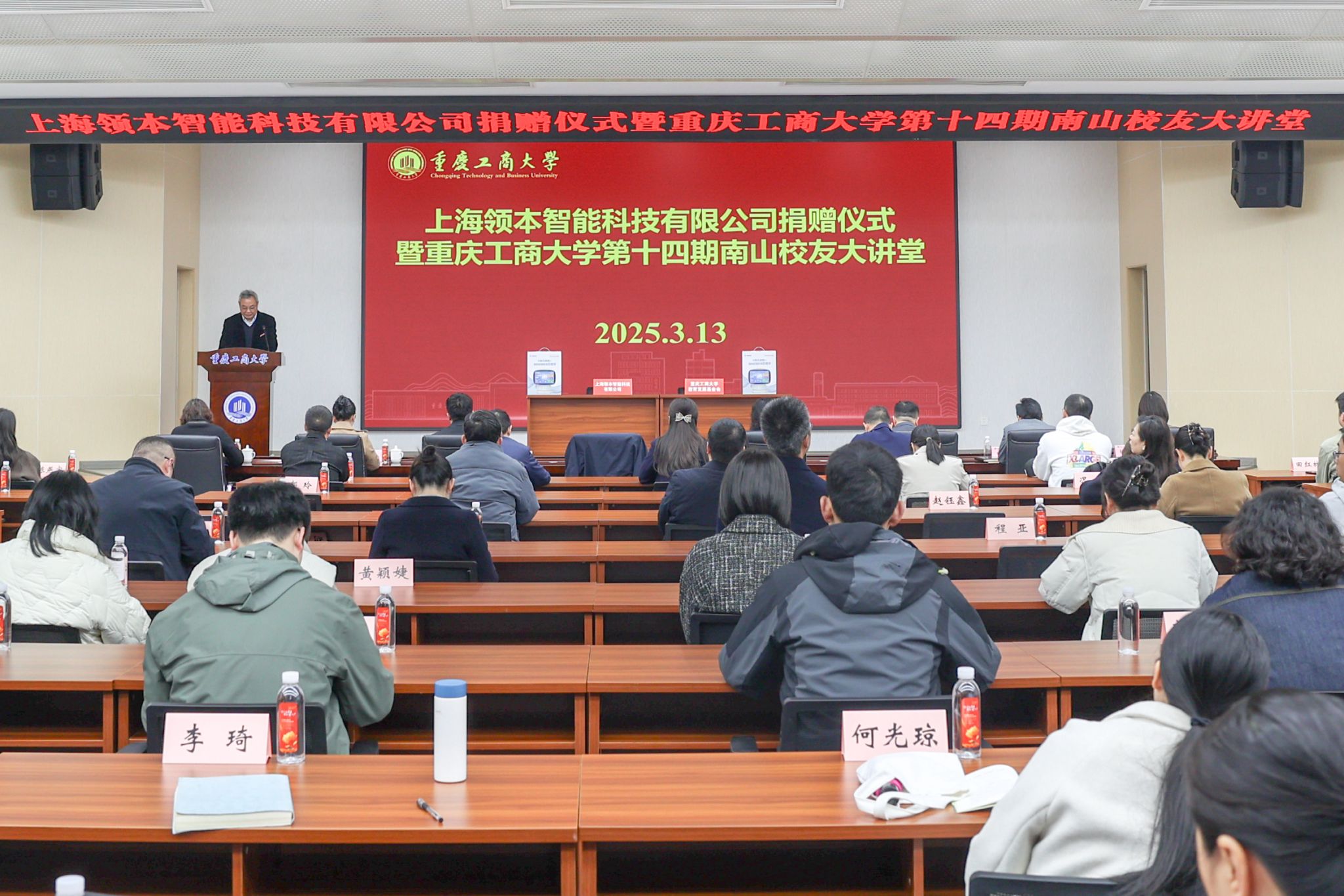 3月13日上午,上海领本智能科技有限公司捐赠仪式暨乐鱼在线登录第十四期南山校友大讲堂在明德楼天健报告厅举行。学校党委副书记宋豫、党委常委、副校长李国军,上海领本智能科技有限公司创始人兼CEO、2009届机械专业校友王军博士出席捐赠仪式。捐赠仪式由李国军主持。