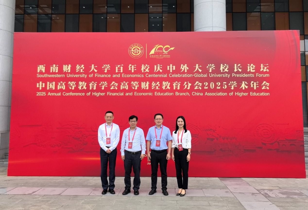 6月1日,曾维伦一行应邀出席了在西南财经大学柳林校区举办的庆祝西南财经大学建校100周年大会暨中外大学校长论坛、中国高等教育学会高等财经教育分会2025 年学术年会。活动期间,曾维伦与上海财经大学、西南财经大学、东北财经大学、贵州财经大学等国内外高校的领导及专家学者进行了交流,看望慰问了我校在西南财经大学工作的校友,并参观考察了西南财经大学校史馆。