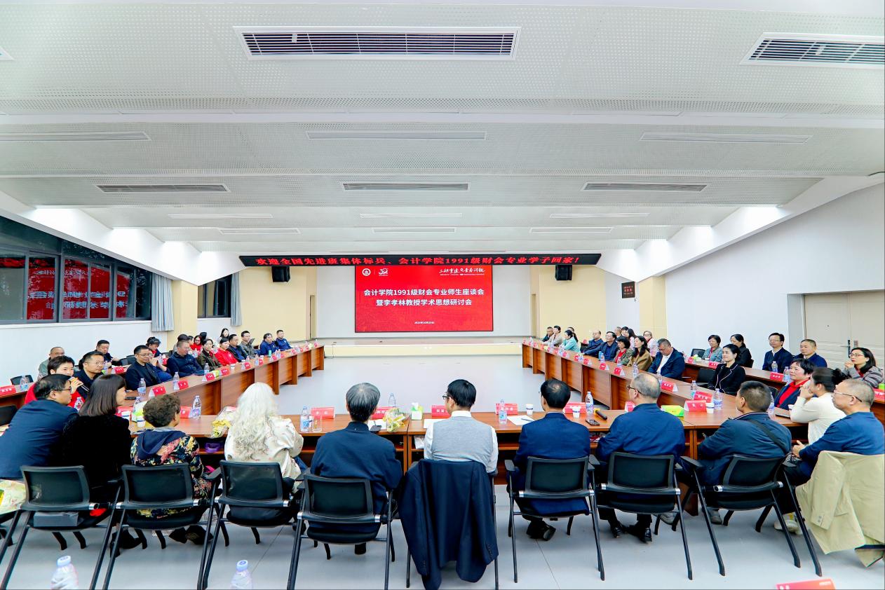 李孝林教授是1991级财会专业的任课教师,他学识渊博、治学严谨、关爱学生,深受学生尊重。在同学们毕业30年回到母校之际,大家追忆李孝林教授的育人风范、研讨他的学术思想。在座师生围绕李孝林教授学术思想、学术贡献、育人理念、无私奉献的大爱精神等方面分享了恩师的治学历程及其对中国会计史的卓越贡献。