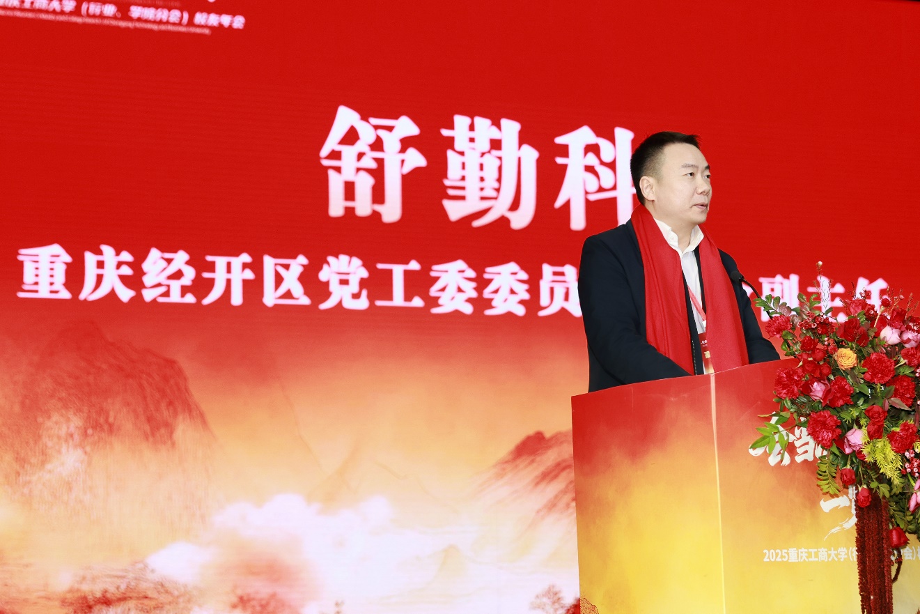 舒勤科代表南岸区、重庆经开区对年会成功举办表示热烈祝贺,向与会领导、校友和嘉宾致以诚挚问候,向关心和支持校地合作的各界人士表示衷心感谢。舒勤科回顾了我校始终与区域发展同频共振、为区域经济社会发展注入内生动力的历史过往,分享了过去一年中,校地合作在攻坚克难保障茶园新校区如期建成投用、联合重大科研成果攻关、共建创新平台方面的新成果。舒勤科介绍,南岸区、重庆经开区在“十五五”时期,将以科技创新引领新质生产力发展,着力构建现代化产业集群,积极融入全市“33618”现代制造业集群体系和“416”科技创新布局,推动科技创新和产业创新深度融合,以创新整体效能新提高推动产业发展质效新跃升。南岸区、重庆经开区将紧抓重庆人工智能湾区建设、重庆东站通车和枢纽新城打造等机遇,加强与乐鱼在线登录合作,提升大学科技园、迎龙创新港能级,升级打造环大学创新创业生态圈。舒勤科向我校各级各领域校友会和广大校友发出邀请,期待大家来区创业兴业,共享发展机遇、共绘“十五五”发展新蓝图。